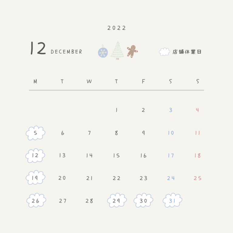2022.12.29㈭〜2023.1.5㈭を店舗休業とさせていただきます。