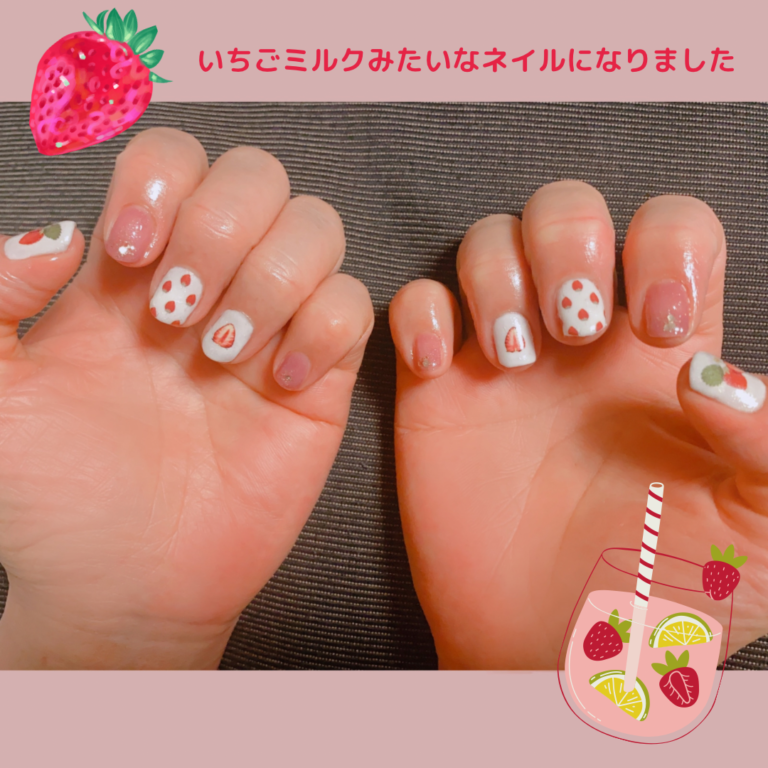 春らしいイチゴミルクのようなネイルになりました♪